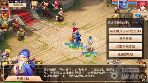 提到清明节,在享受早春乐趣的同时,自然也不能忘记缅怀先人。在活动期间,只要你等级≥40级,且加入了帮派,你就能够在你的帮派中找到祭祀主持,上交贡品或者领取祭祀任务。在满足一定的祭祀进度之后,全帮玩家都将获得奖励,而积极参与祭祀的玩家更可获得专属称谓!