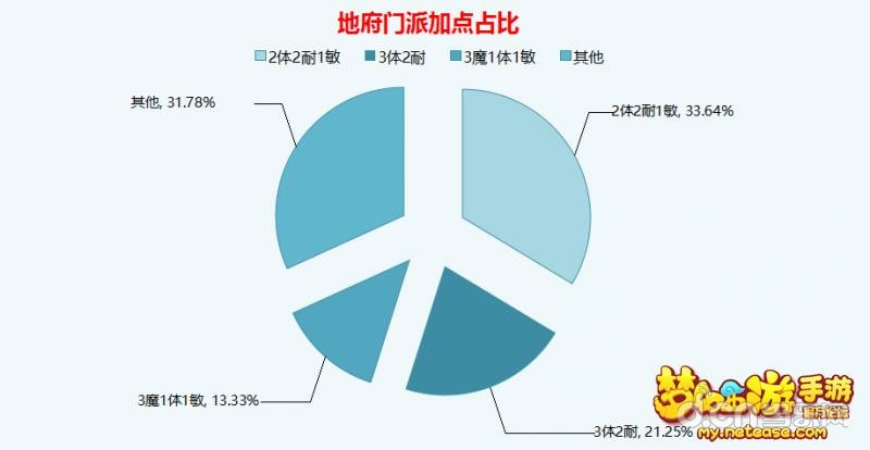 从梦幻精灵方面得到的全服地府加点占比,绘制饼状图如下。(数据为前三类)