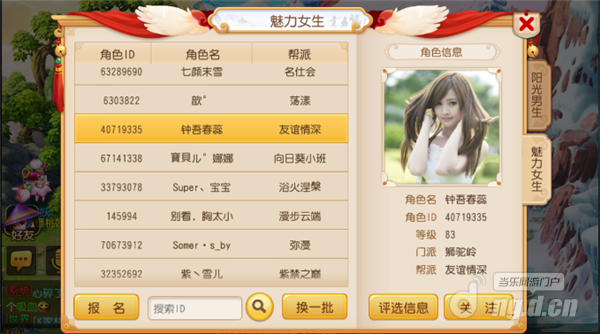 阳光魅力榜的推出,除了让不少花痴MM对着帅哥们大流口水之外,不少男性玩家也在其中找到了属于自己的女神。梦幻手游自登陆平台已经,已经吸引了3000多万玩家进入其中,而在里面也不乏各大学校的校花活跃在服务器之中。而阳光魅力榜活动的推出,让不少校花也随之浮出水面,她们娇俏的外形和如兰的气质,点燃了不少玩家的热情,更让大家相信《梦幻西游手游》这款国民游戏的号召力和影响力,竟在一时之间就吸引了如此多的帅哥美女玩家加入阳光魅力榜的活动之中。