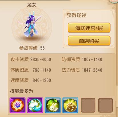 龙女是梦幻西游手游的召唤兽宠物!在海底迷宫4层出现!参战等级为55级。