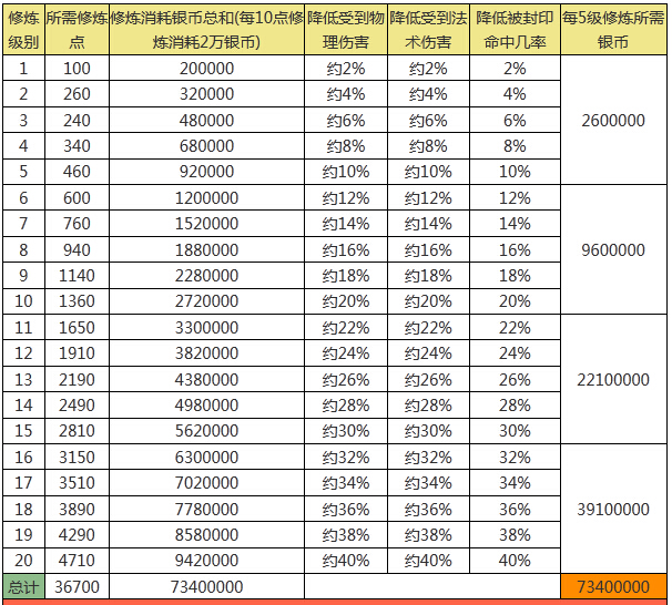 《梦幻西游》手游人宠抗防修炼点修消耗表
