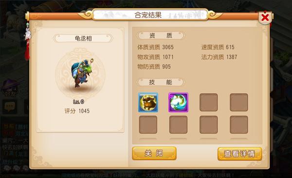 玩家可以点击“预览”来查看两只召唤兽合成后可能获得的资质和召唤兽技能,从而对成品有一个更直观的预测标准。