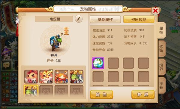 流程:打开召唤兽界面,选择“炼妖”, 再选择“合宠”,然后将两只召唤兽放在相应的召唤兽栏之中即可(注意:和端游不同,手游炼妖中对召唤兽没有等级要求,但必须是宝宝,0级宝宝也能炼妖)。