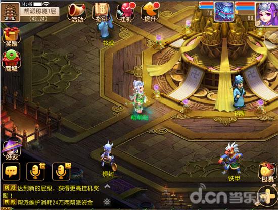 最近帮派来了一位秘境使者,秘境使者可以把大家传送只一个神奇的秘境之中,秘境共分为10层,帮派内成员一起协作战胜秘境中的怪物,可以上升到更高层,层数越高,可以获得越多的经验奖励,同时如果大家爬到了第10层,还会有神秘宝箱供大家拾取。