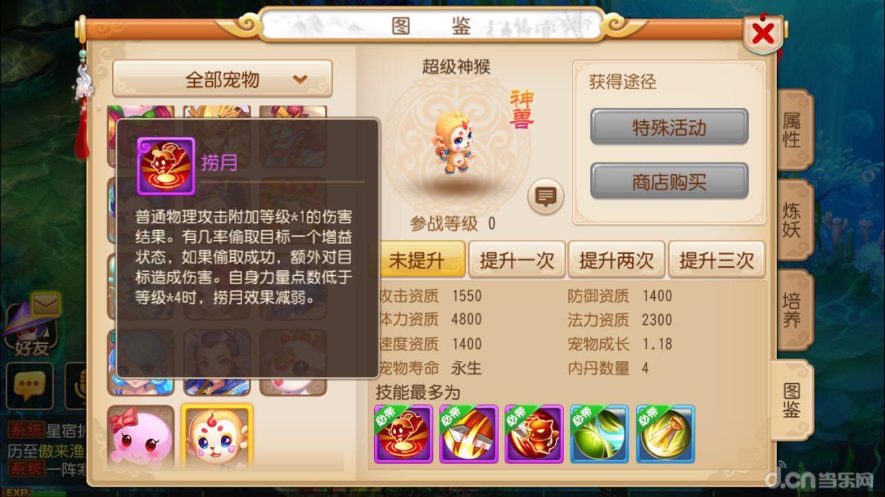 随着猴年春节的到来,神兽家族怎能不来凑个热闹?全新神兽超级神猴现在已经在各大服务器全面开放,为你带来一份洋洋喜气。除了拥有神兽所特有的华丽资质和成长,以及永生寿命之外,超级神猴还拥有高级连击、高级偷袭、幸运、必杀以及独占技能——捞月。能够在对对手造成大量伤害同时,偷取对方的增益状态为己用,让自己获得更为出色的战斗表现!