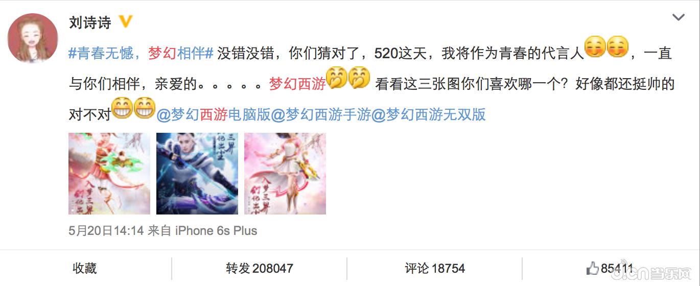 只有真正的明星玩家才是最好的游戏代言人。因为热爱,所以深情;因为热爱,才能创造奇迹。《梦幻西游》手游在玩家群体中发掘代言人时,邂逅了一个在镜头之外,对《梦幻西游》手游无比热爱的明星玩家——刘诗诗!而刘诗诗也在微博宣布代言时,深情地向《梦幻西游》手游表白,宣布成为快乐与青春的代言人。