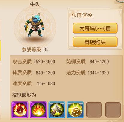 牛头是梦幻西游手游的宠物!在大雁塔5—6层出现!参战等级为35级。