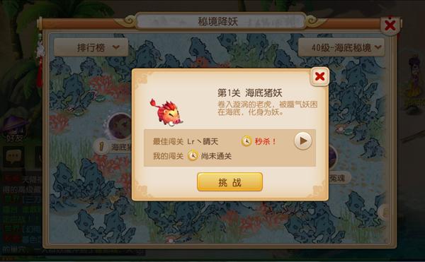 领取等级:玩家等级≥40级开放海底秘境,≥70级开放地狱法阵,≥90级开放瑶池仙阵