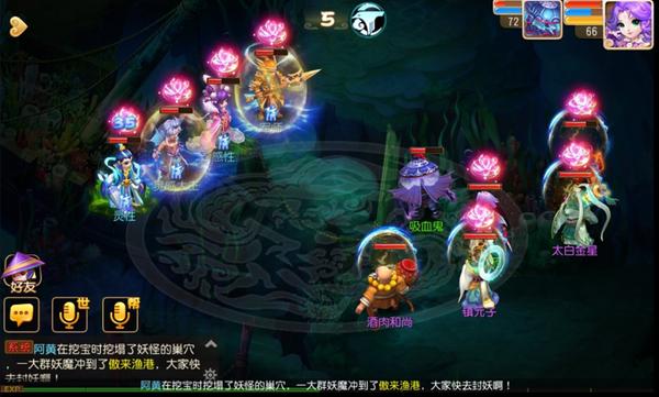 和之前的几次战斗不同,这一次灵感大王的整个团队阵容非常平衡,有封有奶妈还有三个面伤单位,因此若是在前面几回合中我方产生了不必要的减员,那么在这之后很有可能就会全线崩溃。所以笔者强烈建议玩家携带1~2个封系伙伴,先封印住对方的有生力量,尤其是两个狮驼岭是减员的最大关键。在两个回合后,再决定优先点杀哪个单位——由于主怪和普陀山的HP或者防御都比较高,通常情况下玩家需要先从最右边的狮驼岭或者方寸山开始清理。