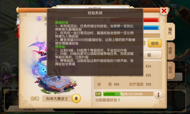 简单来说,所谓的停级系统,就是允许玩家能够将自己的等级停留在69或者89级的一个系统。玩家在达到这两个等级之后,就可以获取突破等级的任务,完成相关的任务才能够升级。同时,玩家如果选择停留等级之后,当前经验值超过了升级经验值的10倍,那么获得的经验值就会有所衰减。所以考虑到目前升级经验值的递增情况,想要在69级停级之后直升89级几乎是不可能的。