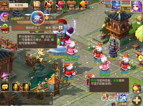 随着冬日的到来,越来越多的雪人也出现在了三界各地。继雪人蹦蹦跳之后,这一次两个立志成为雪人王的大雪人也出现在了长安。他们为自己组建了阵营,来帮助自己称王。在活动期间,帮派成员只要完成各种活动即可获得堆雪人材料,并将这些材料上交给帮派中的大雪人,就能为自己帮派所支持的大雪人加油鼓劲哦。