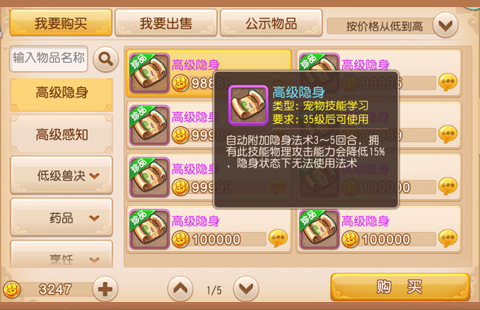 高级隐身降低15%的攻击,而且隐攻宠必备的高连还会降低20%的伤害,所以高级偷袭(提高10%物理伤害结果)不能少。