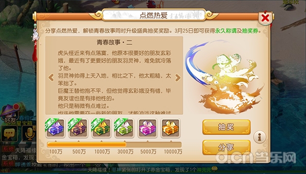 《梦幻西游》手游全新角色漠少君,很快就将加入主角阵营之中。恰逢3月25日,《梦幻西游》手游即将开启青春盛典,《梦幻西游》手游也通过热爱火种,与每一个玩家分享漠少君的故事。玩家只要点击“热爱火种”,即可了解漠少君的故事,并将其分享到微信朋友圈之中。在点燃热爱火种的过程中,玩家也能每天获得一次抽奖机会,分享火种时,若是玩家的好友参与点燃火种超过五次,玩家还将得到额外一次抽奖机会。而只要达到一定的点燃火种数,系统就会为玩家自动升级盛典抽奖奖励,并解锁新的青春故事章节!在点燃火种数量达到一亿次时,《梦幻西游》手游将在3月25日当天开启长达7小时的抽奖活动,每分钟都为玩家送上超级神鸡灵石等丰厚奖励,本次活动累计将送出420只超级神鸡,你是不是心动不已呢?