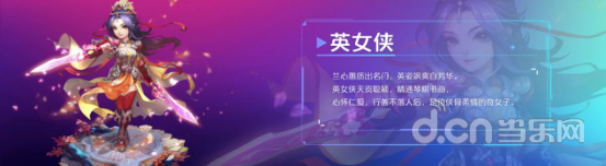 兰心蕙质出名门,英姿飒爽自芳华。英女侠天资聪颖,精通琴棋书画,同时心怀仁爱,行善不落人后,在面对邪恶势力时也绝不会心慈手软,是一位侠骨柔情的奇女子。名门之后的英女侠,可以拜入方寸山、大唐官府或化生寺门下。相信在不久的将来,玩家就会在三界之中看到她飒爽的英姿!