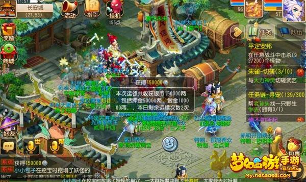 《梦幻西游》手游版 如果运镖没有被成功劫镖,可获得15万奖励