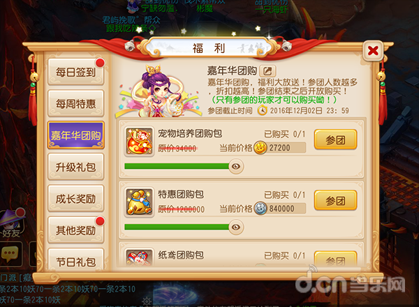 随着梦幻西游2016嘉年华的到来,《梦幻西游》手游嘉年华团购活动也随之开启。在这一团购活动中,《梦幻西游》手游为玩家送上了钥匙礼包、强化石礼包、宠物培养礼包、纸鸢礼包等好礼,以最低的折扣回馈每一个热爱《梦幻西游》手游的玩家。即日起到12月2日,玩家只要在福利界面的嘉年华团购中按需参团,就能在12月3日后获得团购礼包的购买资格,参团人数越多,折扣越大哦!
