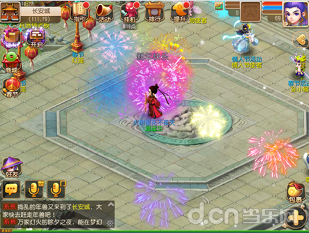 烟火大会:在除夕之夜,怎能没有烟火助兴?在2月7日晚18:00-18:20,20:00-20:20,23:50-24:10,只要你身处长安城欣赏烟火大会,即可获得挂机奖励,使用你受众的新春烟花还能发放弹幕,将自己的祝福送给小伙伴们。