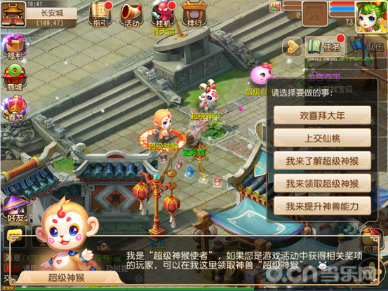 神猴送新禧:提到猴年春节,怎能没有神兽相伴?现在全新神兽超级神猴也已经来到你的身边,只要你在活动期间把道具仙桃交给它,就有可能获得神兜兜奖励,换取自己所心仪的神兽!