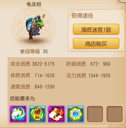 龟丞相是梦幻西游手游的召唤兽宠物!在海底迷宫1层出现!参战等级为35级。