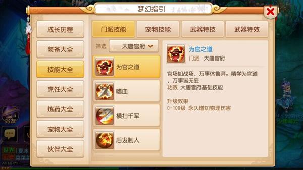 《梦幻西游》手游大唐官府门派技能解析