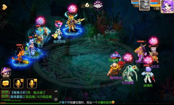 在本场战斗中,毫无疑问,龙王是最麻烦的对象,除了法伤相当高之外,他还有强大的抗封和抗物理攻击能力,所以如果你的法防修炼不过关,很容易就会被他一个龙腾秒杀,由于一方面我们不可能秒杀龙王,另外一方面他的攻击极高,所以我们应该首先控制住他的小怪,避免进一步受到额外的攻击伤害。