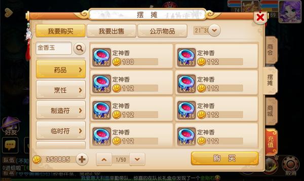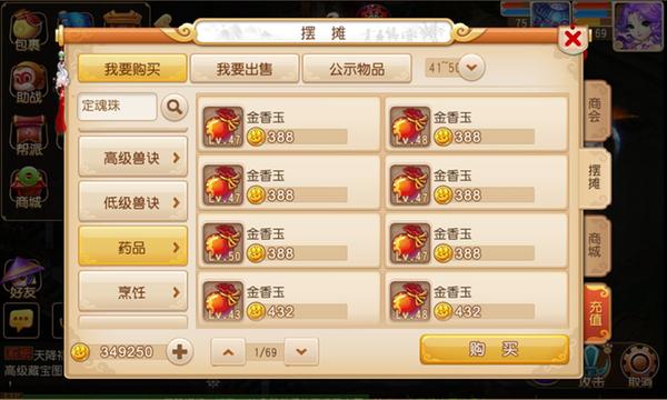 在本次更新中,《梦幻西游》摆摊系统为多种道具增加了按照等级和品质搜索的功能。比如三级药、烹饪、临时符、打造符等等,而正因为这样的改变,很多人表示找不到相应的商品。而实际上,这可能只是因为你的物品选择区域不对。在现在的新摆摊界面中,玩家需要选择部分物品相应等级(默认为1~10),所以结果就是比如你要找蛇胆酒,但是因为蛇胆酒通常没有50品以下的,在默认选项中你找不到,要手动选择50~59这个区域才能看到。所以当你找不到某种商品时不妨先看看自己有没有选对品质。