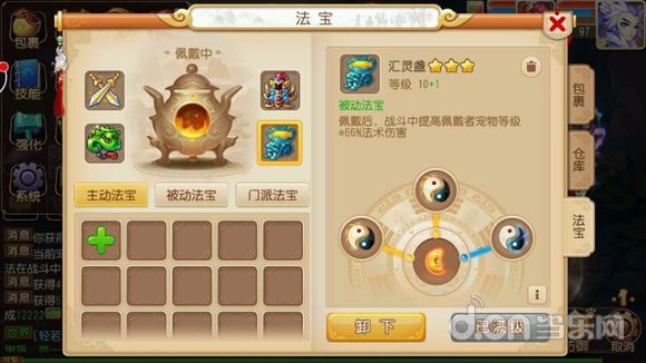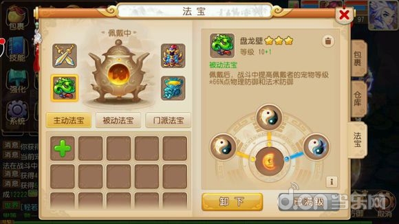 有钱的话我是攒不起来的,原因就是上面的法宝!我本来是附灵玉,金甲,盘龙,灯都十级,因为我是龙宫不需要法防,不想速度太快,没弄风袋。日常用用还是挺好的!