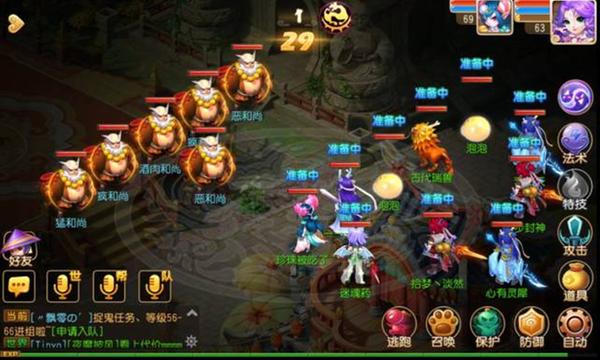 严格来说,酒肉2和酒肉1相比,并没有太大的区别,但是减少了相应的治疗能力,而是换成了两个方寸山,这使整个队伍的干扰能力大增,所以如果运气不好,开局就封住了己方的普陀山或阴曹地府的话,很容易就会全线崩盘。所以在这里,建议团队中的地府在第二回合,如果团队血线比较稳定,可以开一个鬼眼来提高团队的抗封能力。然后你们的方寸山应该优先封住对方的方寸山,防止他们破坏你的团队输出节奏。而大唐官府则可以集中点杀主怪,然后再以点杀狮驼岭,降低整个团队的治疗压力。这里提供给玩家一个在60级剧情中非常有用的小窍门:由于每场战斗中,玩家可召唤的召唤兽数量非常有限,65级可携带的吸血鬼在其中能够发挥重要的作用,它的鬼魂术能够使自己在死去后,还能满血复活,保证团队尽可能减少在召唤兽上的减员。