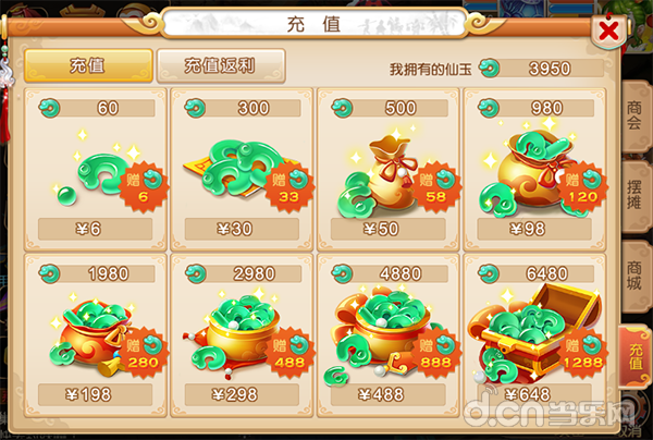 1、每次充值都有额外仙玉赠送,充值额度越大,赠送越多