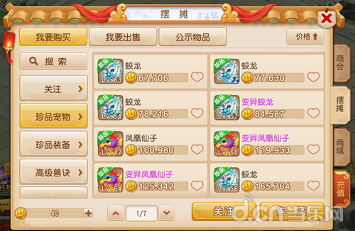 2、通过摆摊系统可购买其他玩家出售的道具或宠物