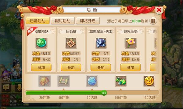 请玩家注意:像帮派任务、捉鬼这样的活动,虽然能为你带来丰富的活跃度,但是其完成次数却非常有限,且每周只刷新一次。因此在每周刷新这些任务之后,不要一次性急着完成,而是应该将其分为7天分别完成,这样才能不浪费任何一点活跃度。