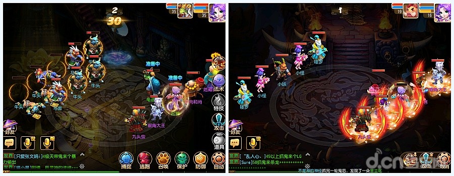 把《梦幻西游》的操作单独提出来,或许小编本就不安好心。这样一款毫无打击感的回合制游戏,要说操作性和战斗爽快感,那都是泪。当然,游戏虽然支持自动寻路自动战斗,但也不是毫无操作价值,和端游一样,玩家可以手动控制释放人物和宠物的技能,选择攻击、逃跑、保护或者防御,而阵型的引入和相互克制系统也为游戏的策略性增色不少。不过游戏的战斗效果着实一般,不提也罢。