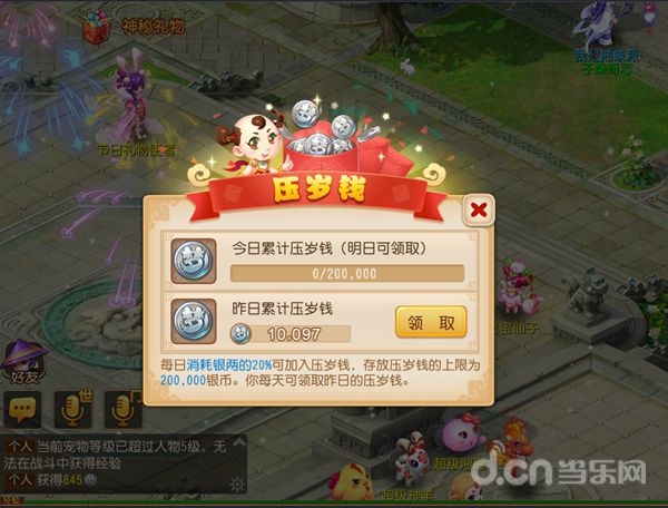 新的一年,怎能没有压岁钱呢?现在,不管是小孩子还是大孩子,都有机会获赠《梦幻西游》手游送上的专属压岁钱!在1月27日~2月2日,玩家只要在游戏中每天消耗一定数量的银币,系统会自动将其中的20%储存起来,在第二天作为压岁钱返还给大家。每天最高20万银两返还,让每一个玩家收获一份小小祝福!
