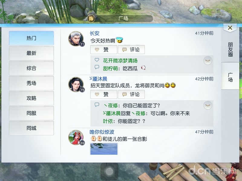 与此同时,在《镇魔曲》手游朋友圈的广场中还提供了热门、最新、综合、秀场、攻略、同服、同城等小版块。在广场上天命者可以获得许多热门、最新的圈内信息,或许还能遇上有趣的事,与有趣的人或志同道合者结为好友。如有天命者在热门版块中发布“招募固定队成员,龙将御灵和尚”,这时有意向且符合条件的天命者便可以加好友成为固定队员。