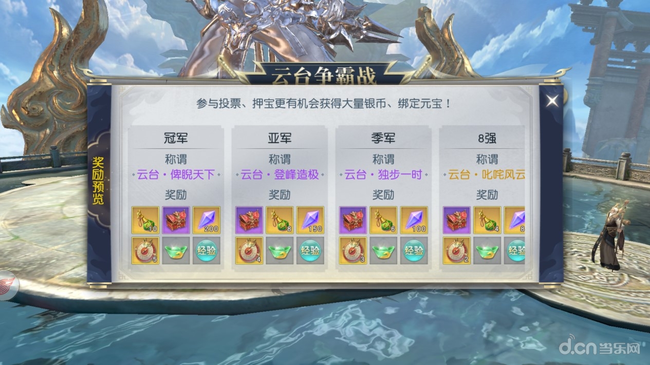 各类珍稀道具、职业套装等已为冠军备下,“云台-睥睨天下”的至尊称号将于今晚易主,云都之中取代上届冠军塑立雕像的将会是谁?锁定晚上20点、锁定网易CC直播,一起见证新的传奇诞生吧!如果天命者们押注的战队也在决赛舞台之上,别忘了为他们加油、夺取三甲后将获得奖池内的大量元宝哦!