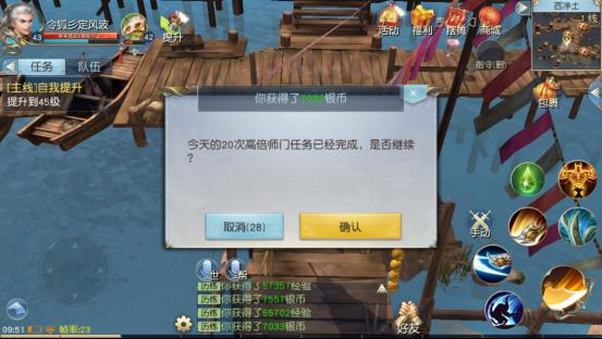 当完成20次师门任务,系统会提醒今天的20次高倍师门任务已经完成,是否继续。有兴趣的朋友可以接着做,不过20次以后的师门所获得的奖励实在低得可怜,个人不推荐继续,浪费时间。但是有需要刷经验的人可以继续做一下。虽然少,但是也是经验不是么。