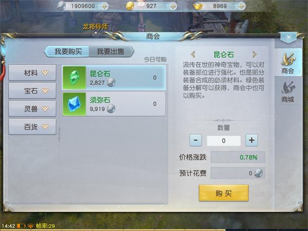 1、商城界面 点击主界面右上街“商城”按钮可以进入商城界面,在商城界面中可以看到右侧有“商会”“商城”两个选项,“商会”中可以用银币直接跟系统购买或出售相对应的道具,而“商城”则是需要使用“元宝”或者和“金币”才能进行购买;