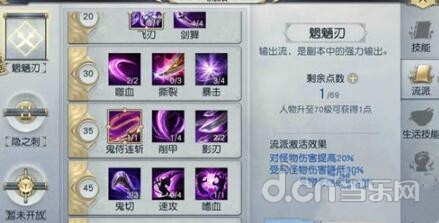 魍魉刃还是主点输出技能,最大化的提高技能收益,影之刺就要协调提高一下被动增益,60、70阶段的尤为重要,后期建议优先点满。