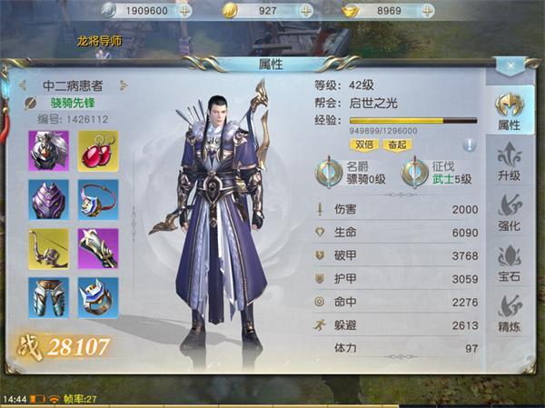 1、装备界面 点击主界面右侧的“属性”进行人物属性界面,可以看到左侧便是人物“装备”陈列区;