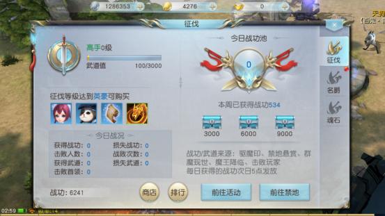 征伐系统是通过武道值、获取战功来进行提升的。每次玩家需要完成驱魔印、禁地悬赏、群魔现世、魔王降临、击败玩家等一些列只属于禁地的玩法,才能够获得一定的武道值、战功。