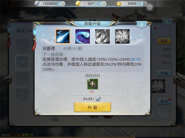 6、技能升级 点击“升级”按钮可以使用道具“驯兽决”对宠物技能进行升级,技能升级能提高灵兽在战斗中的伤害或者恢复能力;