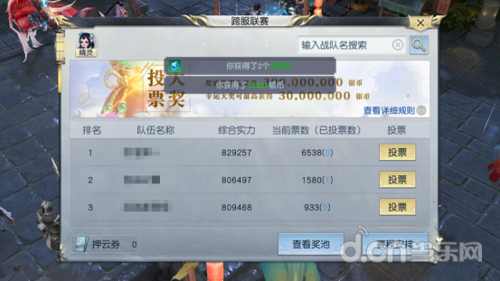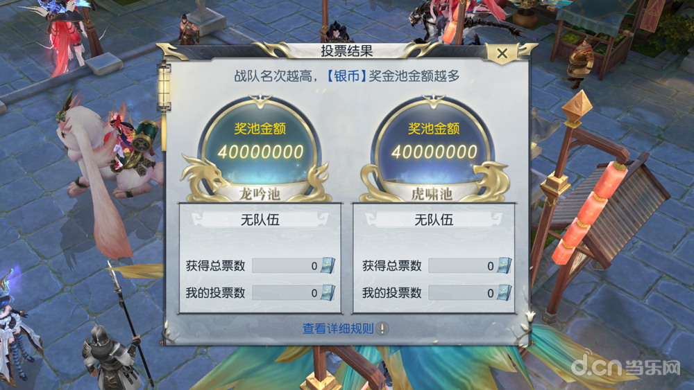 当投票阶段结束之后,本服获得第一、第二名的两支队伍将分别对应虎啸、龙吟两大奖池,天命者们只要给对应的战队投过票,便能根据战队名次获得奖励!投票有名次,奖池无分别。两大奖池基础奖金均为4000万银币,其后根据具体成绩奖金数还将增加,如果战队夺冠,奖池将达到惊人的3亿!
