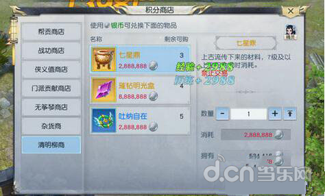 在清明柳商处可以购买七星鼎、璀钻明光盒、历练等等。清明柳商只开放一周时间,将会在下周维护后离开。