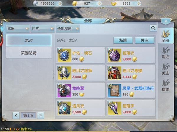 1、摆摊界面 点击主界面左上角“摆摊”图标,可进入摆摊界面,在此界面可以查看其他玩家摆摊出售的道具以及价格。