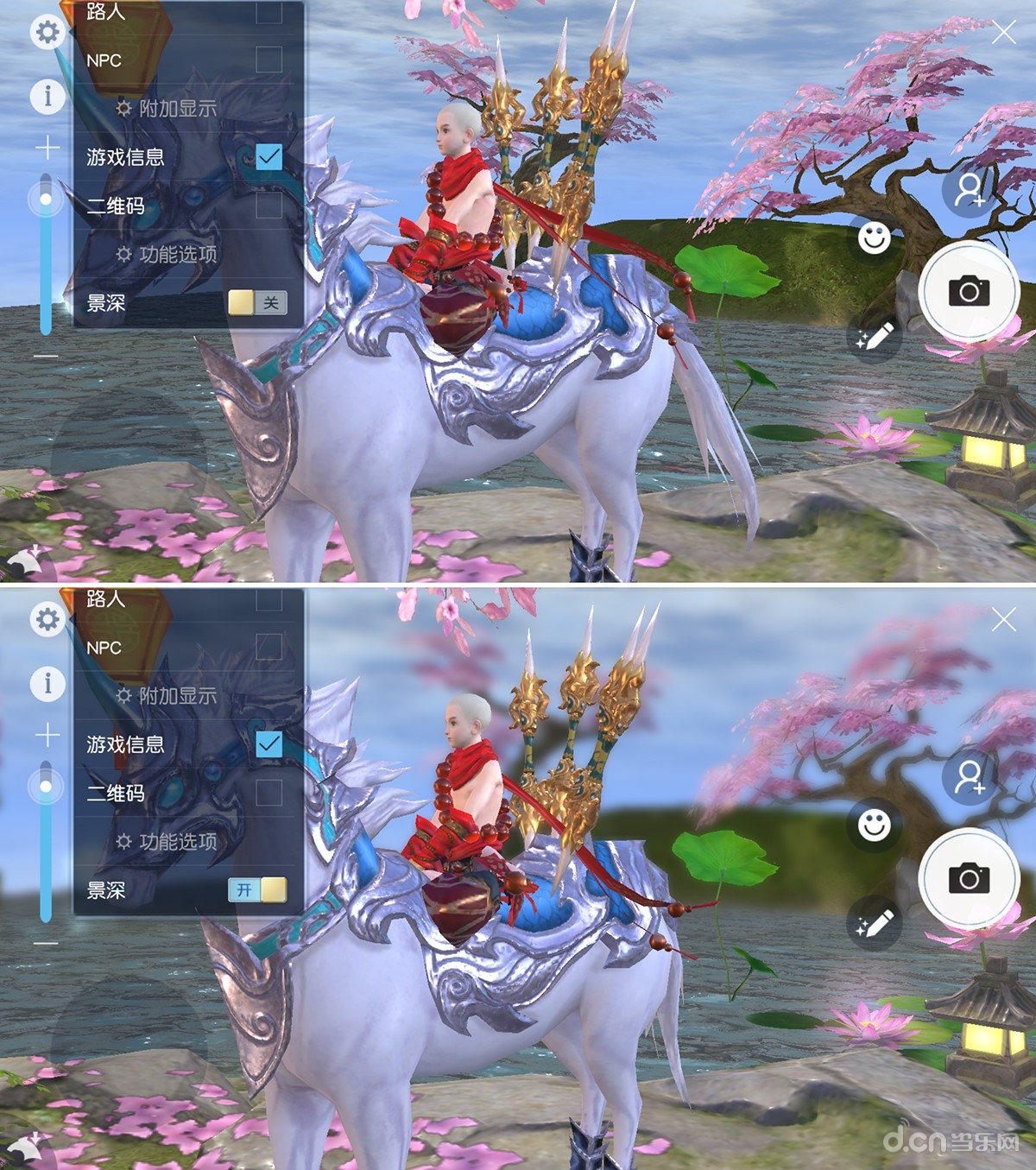 同时,在设置功能中还增加了一项黑科技玩法——远景虚化功能。玩家可通过设置“景深”的开放与否,不用单反相机即可拍出长焦镜头的远景虚化效果。