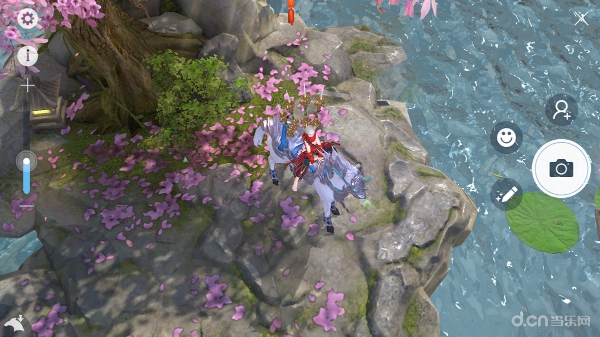 除此之外,拍照模式中还支持玩家进行上下坐骑和摇杆走位操作,玩家可以更加随心所欲的调整拍照姿势,选择拍照地点,精雕细琢拍出心仪的照片来。