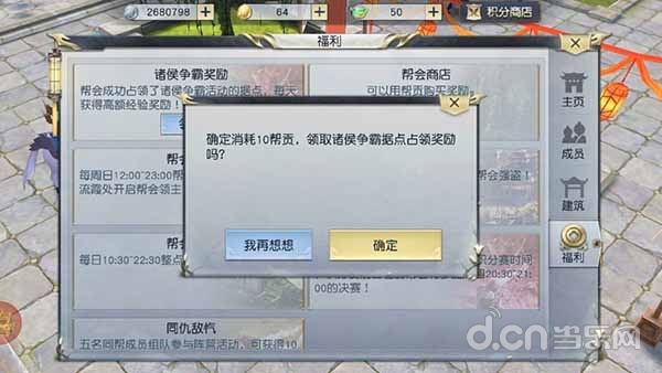 成为了“诸侯”或者“霸主”的帮会,帮主还将可以为帮众争取到更多福利——一级到三级,商行等级都由帮主说了算!届时帮主将能够通过提升商行等级,为帮众争取到更多珍贵道具的购买机会。商行默认刷新时间不适宜大多数帮众的游戏在线时间?不急,帮主还可根据帮众的具体情况,随时为商行设定每天的刷新时间。