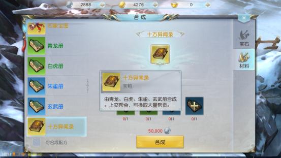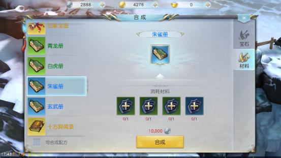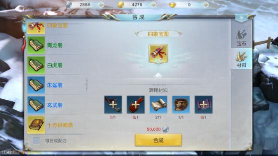 除了宝石合成这么一个大的亮点之外,材料方面的合成也是让玩家十分喜爱的,作为顶级的四象宝图,玩家在收集完足够的材料之后,可以进行去兑换“四象宝图”。