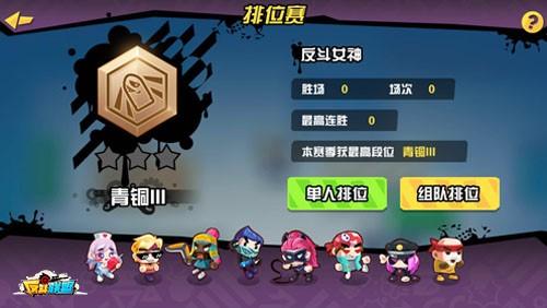 玩家达到5级后,点击《反斗联盟》主界面的“排位赛”就可以进入排位模式了,胜场、总场次、最高连胜和段位等相关信息都可以在这个界面里找到。正式比赛前,玩家还可以选择单人排位或是组队排位模式。带上女友基友一起反斗,这是友情的巨轮开往浪漫的土耳其的节奏~要注意的是,如果是三人开黑,那匹配到的对手也是三人组队上分哦。