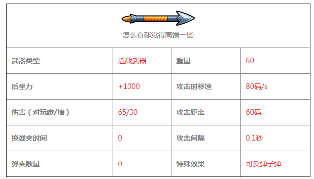 和其他近战武器一样可以弹开子弹,总体来说这把武器不错,那些喜欢武器攻速快、有连击效果的玩家可以选择合金长矛。